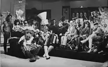 Purporting to originate from Goodman's apartment, the original set was an ad-hoc studio built in the basement of an abandoned Eagles Club in downtown Tacoma. After several years at this location, the program moved to the public-access television facilities of TCI Cablevision in Seattle, where it was broadcast live. After one season on Public-access television, the show moved to TCI's commercial "local origination" channel which allowed sponsor tie-ins and other production synergies. Featuring genuine celebrities in addition to scripted ones, live music, a live audience and call-ins from viewers, the show became a genuine weekly event in the Seattle television market and frequently played to a standing-room-only house.[2]