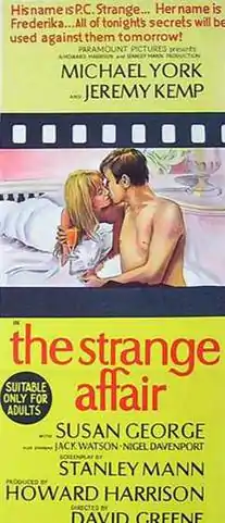 The Strange Affair is a 1968 British crime drama film directed by David Greene and starring Michael York, Jeremy Kemp and Susan George.[1] It is based on the 1966 novel by former Metropolitan policeman and private investigator Bernard Toms that was believed to be based on policeman Harold Challenor[2]