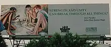 1992: In the wake of the 1992 Los Angeles riots, Mayor Tom Bradley used Barnes's painting Growth Through Limits as an inspirational billboard in the inner-city. Barnes contributed $1,000 to the winner of a slogan contest among the city's junior high school students that best represented the painting.[34][35]