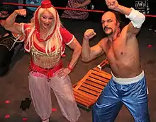 After leaving Women Superstars Uncensored, Coates began competing on the independent circuit throughout 2011 before taking a hiatus due to requiring knee surgery.[24] On February 4, 2012, Coates made her debut for the Michigan Championship Wrestling Association in a mixed tag team match, where she teamed with Tyler Elkins to defeat Sybil Starr and Brian Castle.[25] As a result of gaining the pinfall for her team, Coates was granted a match against the Bombshell's Champion Arella Angel.[25] On March 3, Coates defeated Angel to win the Bombshell's Title.[25] Soon after the victory, Coates left the MCWA, leading to the Bombshell's Title being vacated in the process. On June 15, 2012, Coates defeated Stacy Shadows to win the Brew City Wrestling Women's Championship, ending Shadows' near two year-long championship reign.[26] Coates would go on to hold the title for over three months before losing it back to Shadows on September 21 in a three-way match also involving Melanie Cruise.[26] On November 15, 2014, Coates began managing Sabu, complete with the nickname "The Super Genie".
