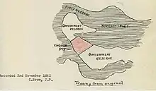 A government surveyor who was surveying the boundaries of the Bricklayer's Claim, offered a small island in the bay known as Deadman's Island (also shown on some maps as Coal Island) to Brighouse for $5, but Brighouse declined in the belief that they already had plenty of land.[3] In 1865, Morton rowed across to the island and was fascinated to find hundreds of red cedar boxes perched in the upper branches of the trees. But going to touch one of the boxes, he found it fragile and it crumbled easily, showering him with the bones of a long-deceased Indian. The boxes contained the bones of Squamish people and when Morton made enquries with the chief of the tribe, he was told that the island had been the site of a massacre in which some 200 tribesmen had been killed. Morton quickly changed his mind about buying the island.[8]