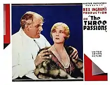 The Three Passions is a 1928 British sound drama film directed by Rex Ingram and starring Alice Terry, Iván Petrovich and Shayle Gardner.[1] While the film has no audible dialog, it was released with a synchronized musical score with sound effects using both the sound-on-disc and sound-on-film process. The film was made as a quota film for Allied Artists[2] and was based on a novel by Cosmo Hamilton. It was filmed on the French Riviera.