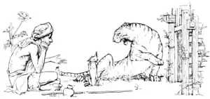 - ↑ Jacobs, Joseph (1892). Indian Fairy Tales (1913 ed.). Forgotten Books. pp. 69–73. ISBN 1-60506-119-0. where it appears as The Tiger, the Brahman, and the Jackal. Jacobs gives his source as "Steel-Temple, Wideawake Stories, pp. 116-20; first published in Indian Antiquary, xii. p. 170 seq." It can be found online here at Google Books and here Archived 2011-07-11 at the Wayback Machine with its illustration.