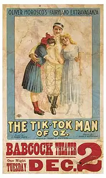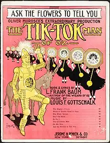 The Tik-Tok Man of Oz is a musical play with book and lyrics by L. Frank Baum and music by Louis F. Gottschalk that opened at the Majestic Theatre in Los Angeles, California on March 31, 1913.[1] It is loosely inspired by Baum's book Ozma of Oz (1907), incorporates much of the material from Baum's book The Road to Oz (1909), and was the basis for his 1914 novel, Tik-Tok of Oz. It was promoted as "A Companion Play to The Wizard of Oz" and directed by Frank M. Stammers. The play is known from its advertising and published music, but survives only in earlier manuscript.