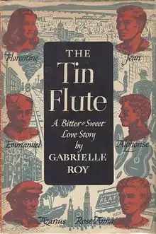 The Tin Flute (original French title Bonheur d'occasion, literally "secondhand happiness") is the first novel by Canadian author Gabrielle Roy and a classic of Canadian fiction. Imbued with Roy's brand of compassion and understanding, this story focuses on a family in the Saint-Henri slums of Montreal, its struggles to overcome poverty and ignorance, and its search for love.