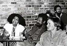 Performers, poets, and musicians included: Ted Curson,[13] David Murray, saxophonist; Harry Lewis, a poet and the bartender; the New York Saxophone Quartet,[14] World Saxophone Quartet composed of David Murray, Julius Hemphill, Hamiett Bluiett and Oliver Lake; Anthony Braxton, Stanley Crouch, Paul Jeffrey,[15] the Revolutionary Ensemble,[16] Charles "Bobo" Shaw , Steve McCall, the drummer for the group AIR; Fred Hopkins, Phillip Wilson, Fee Dawson, Lionel Mitchell, Marguerite, Fred Hopkins, Ntozake Shange, Basic Earthforms,[17] and Richard Brautigan, Adrienne Rich, Diane Wakoski, Michael Heller, Jane Augustine and Jack Micheline, and Muhal Richard Abrams, founder of the Association for the Advancement of Creative Musicians.[18]