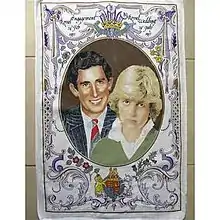 A tea towel commemorating the 1981 wedding of Charles, Prince of Wales, and Lady Diana Spencer, of the kind referred to in "Architecture and Morality Ted and Alice"