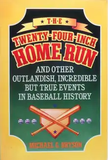 The Twenty-Four-Inch Home Run: And Other Outlandish, Incredible But True Events in Baseball History is a book about baseball lore written by sportswriter Michael G. Bryson. The title refers to the book's central story, about a game where Andy Oyler hit a baseball that became stuck in the mud 24 inches in front of home plate, allowing him to score an inside-the-park home run before the opposing team located it.[1] All told, the book contains 250 such stories, including an anecdote about a team registering a triple play without touching the ball.[1] Bryson also debunks several well-known baseball legends, including Babe Ruth's called shot and the story that Abner Doubleday invented baseball.[1]