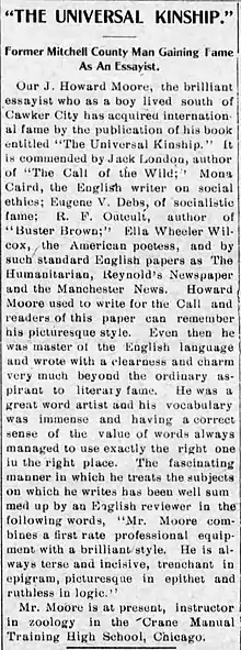 - ↑ "J. Howard Moore". Henry S. Salt Society. Retrieved 2019-10-04.