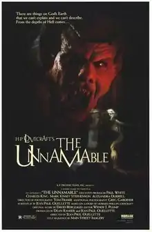 The Unnamable is a 1988 American horror film directed, written, and produced by Jean-Paul Ouellette. It is based on H. P. Lovecraft's short story of the same name. The film is about a group of university students that made the poor decision to stay overnight in a 'haunted house'. Mark Kinsey Stephenson played the lead role, Randolph Carter (a well known H.P. Lovecraft character), alongside Charles King.