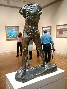 The best example of Rodin’s ‘sketchy’ impressionist sculpture also happens to be his most well-known ‘incomplete’ figure. This work personifies the latter part of Rodin’s career: the dynamic pose of a partial figure. Deriving much from Rodin’s earlier work St. John the Baptist Preaching, including the powerful stance, Rodin had stripped all academic associations from his figure, and instead focused on what he considered essential: the dynamic pose.