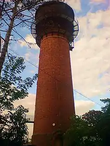 The Water Tower is a water tower located in Coleshill, Buckinghamshire. It was built by German prisoners of war during the First World War to provide a gravity fed water system for the nearby town of Amersham. The tower is 30 metres (100 ft)[1] high with an internal diameter of 5.4 metres (18 ft). Its location on the summit of a hill makes the tower something of a local landmark and it is easily visible from the M40 motorway. Central London, Canary Wharf and Guilford Cathedral can be seen from the top of the tower on a clear day.[2] In the late 1990s the tower was turned into a residential dwelling. In 1999 it featured on the Channel 4 programme Grand Designs.[3]