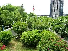 The Abhakara Kiartivongse monument's view of the sea has been mainly blocked by the building's construction (as seen in the left)
