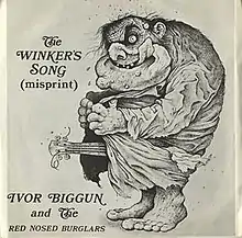 "The Winker's Song (Misprint)", also known as "The Wanker's Song" and "I'm a Wanker",[1][2][3] is a 1978 British comedy single. It was written and performed by Doc Cox, under the pseudonym of "Ivor Biggun and the Red Nosed Burglars"[4] and produced by Beggars Banquet Records.[5] The song was released on 2 September 1978.[6] It reached number 22 on the UK Singles Chart despite not being aired on the radio owing to obscenities pertaining to masturbation within the song.[7]