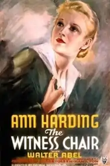 The Witness Chair is a 1936 American courtroom drama film directed by George Nicholls, Jr. and starring Ann Harding, Walter Abel and Douglass Dumbrille.[1][2][3]