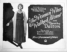 The Woman Who Walked Alone is a 1922 American silent drama film directed by George Melford and written by John Colton and Will M. Ritchey. The film stars Dorothy Dalton, Milton Sills, E. J. Ratcliffe, Wanda Hawley, Frederick Vroom, Mayme Kelso, and John Davidson. The film was released on June 11, 1922, by Paramount Pictures.[1][2]