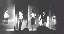![]() Live and filmed actors "interact" during the flower-passing scene | |