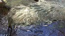 When assessed in 2002, the Braidwood Road west of the Bulee Gap showed some remnants of the 1856 roadworks and was an example of road making from the immediate post-convict period, before the formation of the Department of Public Works in 1859. Drill marks were visible in the sandstone outcrops where they have been cut by the road makers. Dry stone retaining walls were evident, some of which had been compromised by modern road grading.[30] Between 2007 and 2010, the Braidwood Road was sealed and upgraded to modern highway standard at a cost of $99-million,[108] including major work where the road climbs from the Endrick River and passes the Bulee Gap[109] The work in that area included removing bends, cutting back the cliff faces, installing high retaining walls and building a four-span concrete bridge structure. The route of the modern road over the bridge structure preserved sandstone landforms and a part of the 1856 road's formation, including a dry stone walled embankment and the junction with the older 1841 route at the south end of the Bulee Gap cutting.