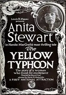 The Yellow Typhoon is a 1920 American silent drama film directed by Edward José and written by Monte M. Katterjohn. It is based on the 1919 novel The Yellow Typhoon by Harold MacGrath. The film stars Anita Stewart, Ward Crane, Donald MacDonald, Joseph Kilgour, George Fisher, and Ed Brady. The film was released on May 3, 1920, by First National Exhibitors' Circuit.[1][2][3]