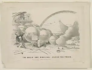 The downfall of slavery began with the Abolitionist movement and the Republican Party establishing a strategy of ending slavery in the United States. This strategy involved the United States Constitution, using its clauses to abolish slave trades and slavery as a whole. Congress decided that preventing the admission of new slave states would be the first step in abolishment, next they use the Commerce Clause to ban interstate slave trade preventing the migration of slaves to the southwest.[14] John Alexander Wills began an uproar concerning the morality and legality of slavery that helped kickstart the Republican Party in California to start its siege against slavery. Due to the Kansas-Nebraska Act of 1854, there was an immediate possibility of danger for the anti-slavery rhetoric which could have awoken the majority of politicians in the North to express power of the slaveholders that had their place in Washington D.C.[5]