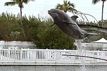 Theater of the Sea, established in 1946, is a marine mammal park located in the Village of Islamorada, Florida, United States. It is a tourist attraction located on Windley Key in the Florida Keys. Visitors can swim with Atlantic bottlenose dolphins, California sea lions, and sting rays and nurse sharks. Dolphins swim in and jump through a hoop and ring a bell. The 17-acre (6.9 ha) site also has exotic birds, lizards, crocodilians, sea turtles, tropical, game fish, sharks, and other forms of marine life. Short cruises and bottomless boat rides are also conducted.