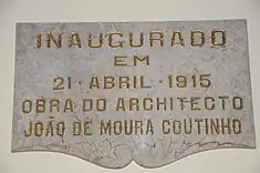 The inauguration plaque dedicated to João de Moura Coutinho, principal architect