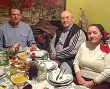 ![]() Thede Kahl (left) together with the Romanians Viorel Rogoz (center, another ethnographer) and Victoria Lelea (right, a former worker at the Satu Mare railway station) at Marna Nouă, Romania | |