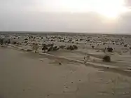 Though the realistic approach was praised, the crew members working on the film faced difficulties while shooting in the project, where several of the film's cast and crew fell sick during the making of the project as a result of the warm climate.[28][6] On filming a chase scene involving two buses on a highway in Bhuj, Karthi said that "the exposure to the harsh sunlight became unbearable that he was literally under the verge of developing sun stroke". While another sequence featuring Karthi riding a horse in a river bed was filmed at Rajasthan-Gujarat border, the female horse named Chandini ran for two kilometres without break before finally stopping due to exhaustion. Karthi said that "the horse was only used in enclosed spaces, so when, the film was shot in a wide area and exposed to such freedom, the horse just began to run".[29] The team also encountered sandstorm while shooting for the film, where a crane toppled over and drone cameras got damaged; the locals asked the team to cover themselves with balnkets and patiently wait till the storm subsided.[29] Karthi, in an interview, described it as one of his most extensive action films, remarking the action sequences were not easy to execute.[30]