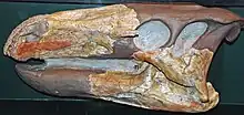In 1878, a student of Colorado College named James Kerr found a partial ornithopod skull at Garden of the Gods park in El Paso County, Colorado.[2] The skull, YPM 1887, was referred by O.C. Marsh (affirmed by Gilmore, 1909), to whom the skull was given in 1886, as that of Camptosaurus amplus. Gilmore used the skull to reconstruct the skull of Camptosaurus assuming that it came from the Morrison Formation.[3] However, microscopic comparisons of thin-sections of the Mesozoic formations in the Garden of the Gods showed that the specimen actually came from the Lytle Member of the Purgatoire Formation; therefore, the skull was Early Cretaceous in age.