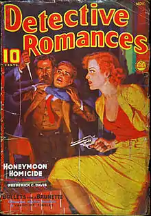 Tinsley's "Bullets for a Brunette" was cover-featured on the November 1936 issue of Detective Romances
