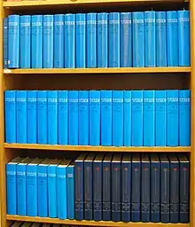 The Theologische Realenzyklopädie (TRE) is a German encyclopedia of theology and religious studies. It contains some 2000 articles in 36 volumes. The first installment was published in 1977, the last in 2004.