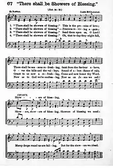 There shall be showers of blessings is a Christian hymn which was written in 1883 by Daniel Webster (1840–1901) under the pseudonym of D. W. Whittle.[1] It was given music by James McGranahan.[2][3]