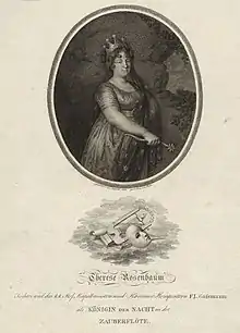 Therese Rosenbaum, or Therese Rosembaum-Gassmann (originally Maria Theresia Josepha Gassmann: 1 April 1774 – 8 September 1837)[1] was an Austrian operatic soprano. Her most famous role was the Queen of the Night in Mozart's The Magic Flute.