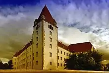 After World War II and the Austrian State Treaty which was signed in 1955, the demolished castle was rebuilt. In 1958, the military academy was again located in Wiener Neustadt after a short intermezzo (1955–1958) in Enns.[6]