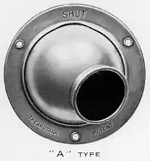 In 1922, Alexander William Stewart invented and patented the Punkah Louvre after many experiments.[14] Prior to the introduction of the Punkah Louvre, the mechanical delivery of air to a space was made through ducting which terminated in a grill or louvre. To ensure this was achieved without undue noise and discomfort, the velocity of the air was no greater than 4 to 8 feet per second. Stewart’s Punkah Louvre, in addition to becoming one of the most ubiquitous objects of the 20th century, allowed air to be delivered at speeds of between 30 and 50 feet per second. Moreover the louvre’s nozzle allowed the air to be directed within a certain radius by hand. The Punkah Louvre was manufactured in three types each suited to a particular kind of delivery. In basic terms, it could control the flow of air and direct it within a certain radius.