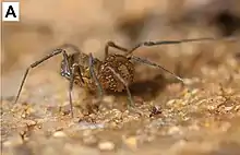 - ↑ Derkarabetian, Shahan; Starrett, James; Tsurusaki, Nobuo; Ubick, Darrell; et al. (2018). "A stable phylogenomic classification of Travunioidea (Arachnida, Opiliones, Laniatores) based on sequence capture of ultraconserved elements". ZooKeys (760): 1–36. doi:10.3897/zookeys.760.24937. PMC 5986891. PMID 29872361.
