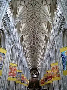 The Nave, Winchester Cathedral with batik festival banners by Thetis Blacker