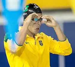 Thiago Machado Vilela Pereira (born 26 January 1986) is a retired Brazilian international competition swimmer. One of the greatest swimmers in the history of Brazil, Pereira won the silver medal in the 400-meter individual medley at the 2012 Summer Olympics in London, beating the then-current Olympic champion Michael Phelps. He also broke a world record in the short course 200-meter individual medley, and broke several South American and Brazilian records. During his career, he competed with swimming legends Michael Phelps and Ryan Lochte.