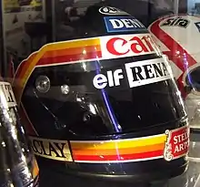 Boutsen's helmet was black with a red, orange and yellow ribbon design surrounding the visor and the rear area. The colours used are the colours of the Belgian flag (except for orange).