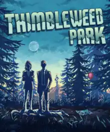 Thimbleweed Park is a point-and-click adventure game developed by Ron Gilbert and Gary Winnick for Linux, macOS, Windows, Xbox One, PlayStation 4, iOS, Nintendo Switch, Android, and Amazon Luna. The game was revealed on November 18, 2014, along with a Kickstarter crowd-funding campaign with a goal of US$375,000, and was released on March 30, 2017.[2]