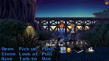 Thimbleweed Park operates on the same principles of early graphic adventures games, in that players navigate various scenes from a third person perspective, using various "verb commands" to perform actions, such as "use", "pick up", and "talk to". Verb commands can be used to perform actions such as allowing a character to pick up an object into their inventory, to converse with another character, or to use an object on another item. The game's story is played out across a series of chapters, in which players must complete a specific set of goals to advance to the next chapter, solving a series of puzzles, some of which require the use of more than one character. The game features around five different player characters, with the ability to switch between them in the middle of gameplay, similarly to Maniac Mansion.[5]