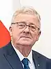 The Third Cabinet of Donald Tusk is the coalition government of Poland headed by Donald Tusk who was officially nominated and confirmed as the Prime Minister of Poland on 11 December 2023 by the members of the Sejm following the failure of Mateusz Morawiecki's Third Cabinet to secure a vote of confidence.[2] On 12 December, Tusk addressed the parliament and announced members of his cabinet, later that day Tusk's cabinet successfully obtained a vote of confidence with 248 of the 460 MPs voting in the affirmative.[3][4] He and his cabinet were officially sworn in by president Andrzej Duda on 13 December 2023.[5]