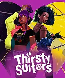 - ↑ Blake, Vikki (July 1, 2023). ""Stylish, story-driven" adventure Thirsty Suitors gets a release date". Eurogamer. Archived from the original on July 7, 2023. Retrieved October 29, 2023.