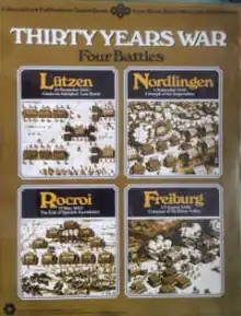 Thirty Years War, subtitled "Four Battles", is a "quadrigame" — four separate board wargames packaged in one box that use a common set of rules — published by Simulations Publications Inc. (SPI) in 1976. The four games simulate different battles during the Thirty Years' War, and were sold individually as well as in the quadrigame format. Some of the games were well received by critics, but overall, the quadrigame did not sell well.