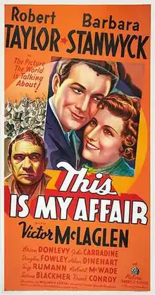 This Is My Affair is a 1937 American period crime film directed by William A. Seiter and starring Robert Taylor, Barbara Stanwyck, Victor McLaglen and Brian Donlevy. It was produced and released by 20th Century Fox.