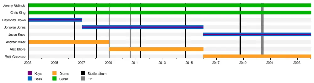 - ↑ There is some ambiguity as to their exact year of formation as sources have reported various years between 2002 and 2005. While the latter is the most-often reported year, the band's original website shows the group was active by 2004.