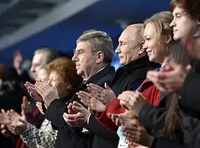 There was wide speculation that Vladimir Putin's support was a key factor in Thomas Bach's election as IOC president in September 2013.[50] It was reported that Putin had congratulated Bach by phone only a few minutes after his election.[51] These facts might have raised a few eyebrows, but can be explained by Russia's interests as hosts of the 2014 Winter Olympics in Sochi.