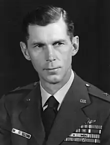 Awards he received include the Legion of Merit, the Bronze Star Medal, the Distinguished Flying Cross, and the Air Medal with two oak leaf clusters.