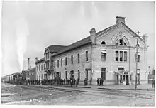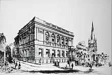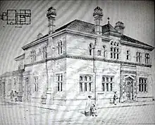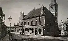 Sorby designed Bromley's Town Hall, completed in 1863.[32][33] It was paid for by Cole-Childs, the local lord of the manor and Deptford coal merchant, who also manufactured the bricks. Bromley's Market Square was redesigned to accommodate it, and the building included at different times a police station, a cell, a fire station, a free library, and a room for the town corporation's meetings. However it was never used as a town hall because Bromley was run by the Vestry, which did not use the building. It was eventually rented by an estate agent, the local paper said it was "monstrous", and it was demolished in 1933,[34][35][36] being replaced in 1906 by a new town hall designed by R. Frank Atkinson.[34][37]