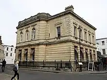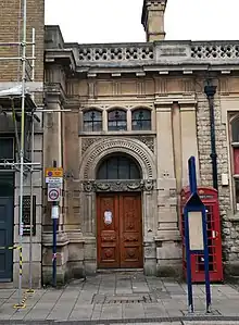 This is a listed building on County Court Road (formerly Regent Street), Cheltenham, Gloucestershire,[82] designed by Sorby in 1868 and completed in 1870.[32] It was built on the site of the previous county court said to be a "damp, dismal barn" and was opened with "very little ceremonial" on 6 January 1871. However the Cheltenham Examiner bemoaned its location, saying that "one can but regret that such a building should be so miserably located, and its beauty so completely lost".[83] Historic England describes the materials of the building as follows:[82]